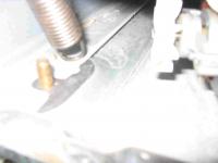 Das Problem ist doch nicht so einfach zu lösen. Den Halter für die Feder anzuschrauben ist leichter gesagt als getan. Er war nämlich an einem Blech festgenietet, das knapp über dem Bodenblech eingezogen ist. Ich denke ich werde versuchen, mit einem kleinen Winkelbohrer das Loch in den Boden durchzubohren.