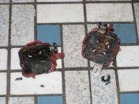 Es ist ein kleiner Kasten, der auf den Motor gesteckt war. Er ist total verschmort. Ich vermute dass es sich um einen Thermistor handelt, da der Motor "Thermally Protected" ist.