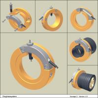Auf der angehängten Abbildung sieht man mein Konzept für ein Ringheizsystem, das auf den Mittelteil eines zur Gesichtsmaske gehörenden Volumensensors, dessen Gehäuse für die Konstruktion neu bestellt wird, aufgeklebt wird. Der Grundkörper des Ringheizsystems besteht aus Kunststoff, gehalten in einem blassen Orange, das bei kalter Umgebung nach der arbeitsergonomischen Farbtheorie auf der emotionalen Ebene die Leistungsfähigkeit verbessert. Das Ringsystem weist eine Bucht auf, in der das eigentliche Heizelement aus Aluminium - vielleicht sogar aus Silber - mit zwei Schrauben modular befestigt wird. Eine Isolierung wird es zusätzlich geben, wobei noch nicht fest steht, mit welchem Fertigungsverfahren diese auf die Konstruktion aufgebracht werden wird. In das Heizsystem wird die neudesignte Düse, über die die Ausatemgase aus dem Innenraum des Volumensensors abgesaugt werden, eingeschraubt und im Betrieb, geregelt von einer Thermoregelung, erwärmt. Die Wärmeemission stammt von der im Heizelement eingepressten Heizpatrone.