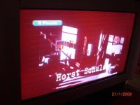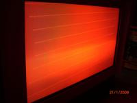 Gerät springt an, aber: erstmal kommt ein roter Startbilschirm... siehe Bild. Dann erscheint ein Normales bild, dass leichte rote Zeilenversprünge anzeigt.