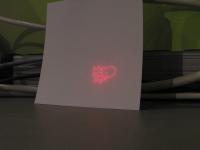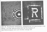 Für ein Hologramm muss man auch nicht unbedingt Dellen oder helle und dunkle Stellen in eine Plastikfolie drücken; durch Ultraschall erzeugte Wasserwellen tun es auch, wie das darauffolgende Bild zeigt.