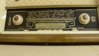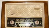 Recht schönes Philips-Radio von 1959/60. Technisch, bis auf die beiden elektrostatischen Hochtöner links und rechts, nichts besonderes, aber solide 50-er Jahre Technik.
