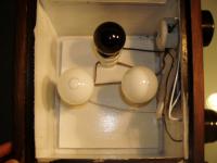 Danke für das Lob! Habe auch keine Mühen gescheut! Also das "weiße Ding" ist ein simples Stück Pappe, welches einen "Berührungsschutz" für die beiden weißen Einbau-Druckschalter darstellt. Das muß ich noch festmachen. Leider gibt es auf der Dose und dem Schalter keine Herstellerbezeichnungen. Nur techn. Daten wie Spannung uns Strom. Auch innen nicht. Anbei noch ein paar Detailfotos.