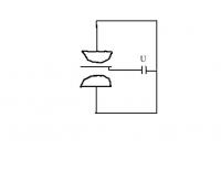 Die 2 Halbkreise sind einfach 2 hyperbolische Elektroden, der Strich dazwischen ist ne Ringelektrode. Die berühren sich nicht.
