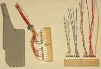 Die Isolierung der Ader wird entfernt und der Draht in die äußere Bohrung gesteckt. Dann wird das ganze auf den Kontakt gesteckt und durch Drehen des Stifts wird dann der Draht um den Kontakt gewickelt.