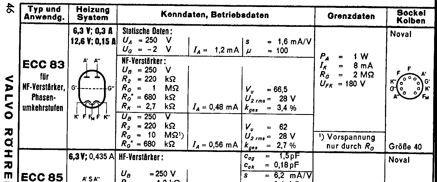 Falls Du das noch nicht hast, anbei ein paar Kurzdaten der ECC83, damit Du weißt, wann sich die Röhre wohlfühlt.