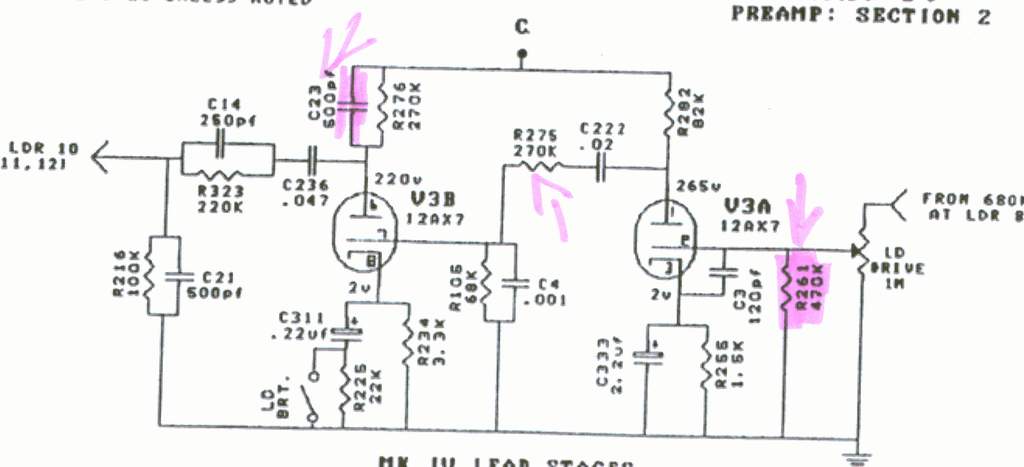 Was allerdings hörbar ist,ist die veränderung der anoden r´s ! Obwohl ich das nicht ganz verstehe,in der ertsen hälfte der ecc83 ist ein 82k und in der zweiten 270k !