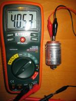 Den Kondensator habe ich ausgebaut und gemessen (siehe Bild); mein Messgerät zeigt exakt 4.053 MicroFarad an - und 4 MicroFarad steht auch drauf. Heisst das, dass der Kondensator zweifelsfrei ok ist? Oder sollte ich noch mit dem Piepser vom Messgerät ran - wie muss das tönen?