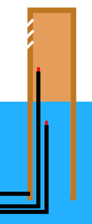 Die Kapazität im durchströmten Bereich ergibt sich also nur durch die Dicke der Isolierung. Im nicht durchströmten Bereich kommt noch der Plattenabstand dazu. Die Gesamtkapazität ist nun die Summe der Einzelkapazitäten. Diese Kapazität kann man nun auswerten (zb. mit einem Schwingkreis) und damit auf die Wasserhöhe rückschließen.