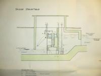 Der Druckaufnehmer sol im Oberwasser sein und da schiebt sich beim Ablassen des Dachwehres aber die Oberwasserklappe über die gerundete Unterwasserklappe siehe Schnitt vom Dachwehr.