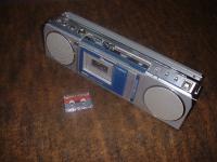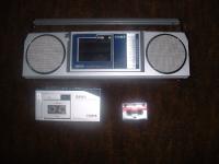 Oben genanntes Gerät ist so ein kleiner Radiorecorder für Microcassetten. Das Besondere daran ist, daß man das eigentliche Kassettenteil herausnehmen und separat verwenden kann. Sei es zur Wiedergabe von Stereoaufnahmen über einen Kopfhörer oder Stereoaufnahme über die eingebauten Mikrofone. Außerdem kann das Rundfunkteil mit den Lautsprechern auch allein benutzt werden, wenn das Kassettenteil nicht drinsteckt. Steckt es drin, können Aufnahmen vom Rundfunk sowie vom einer externen Tonquelle gemacht werden.