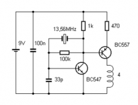 die erste schaltung ist ein lese/schreib-gerät bei der ein quarz die nötige frequenz von 13,56 Mhz liefert.leider weiss ich nich wofür die anderen bauteile dienen ,kann mir vieleicht jemand erklären wie diese schaltung funktioniert?