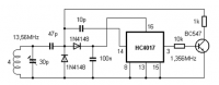 die andere schaltung ist ein transponder allerdings weiss ich nich wofür die erste die diode zuständig ist, die in sperrichtung zu dem 47pF kondensator geschaltet ist ,wenn mir jemand helfen koennte wäre ich sehr dankbar! |