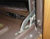 Kann ich das Scharnier irgendwie aushängen (oder wie bekomme ich sonst die Herdtür ab)?