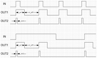 - Bei Anliegen von IN soll OUT1 während t_on1 eingeschaltet werden und anschliessend t_off1 ausgeschaltet bleiben