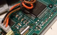 An der Display beleuchtung liegen 9V+ an. wenn ich die andere Seite der LEDs mit einem Widerstand (1K) an Masse lege, leuchtet sie auch; mit dem dafür vorgesehenen Taster aber nicht. Vier Gummitaster sind ohne Funktion. Die Taster arbeiten vermutlich mit dem Prozessor zusammen. Am Prozessor liegen auch 5V an. Jetzt ist die Frage, ob der Professor seinen Geist aufgegeben hat.