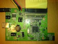 Zweite Idee: von den drei kleinen schwarzen Kondensatoren ist der einzelne spannungslos; ob das jedoch so sein muß oder nicht weiß ich jedoch nicht. Am größeren (links) daneben liegen 5 V, an den kleinen (paarigen) liegen einmal 5 V (der rechte Richtung des IDE-Anschlusses) und am anderen 12 V. Der größere Kondensator zwischen dem USB- und dem Netz-Anschluß liegt an 12 V.