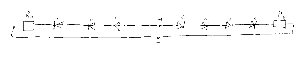 Die typische Flußspannung ist mit 1,8 Volt angegeben, macht bei 7 LEDs hintereinander 12,6 Volt.