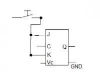 J und K legst du direkt an die pos. Versorgungssspannung ("Plus"), der Takteingang kommt an einen Taster, der entprellt sein muss.