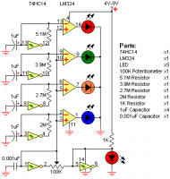 Ich würde dann anstatt der LEDs direkt am Ausgang des LM324 die Basis von Leistungstransistoren ranhängen und die LEDs hinter den jeweiligen Transistor hängen.