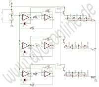 Die Widerstände R6, R12, R14 solltest du so wählen, daß der zulässige LED-Strom nicht überschritten werden kann.