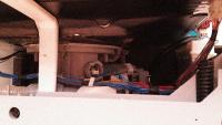 Ich glaube ich hatte richtig glück wie man an dem Bild sieht tritt Wasser an der unterseite des Pumpentopf aus, eine Filzmatte hat das Wasser aufgesaugt und durch das kleine Loch nach aussen gedrückt. Die Bodenplatte ist nur leicht nass. Ich hab die 4 Schrauben am Boden im Innenraum nachgezogen die waren richtig locker.Nach einmaligen Waschdurchgang ist der Pumpentopf trocken.